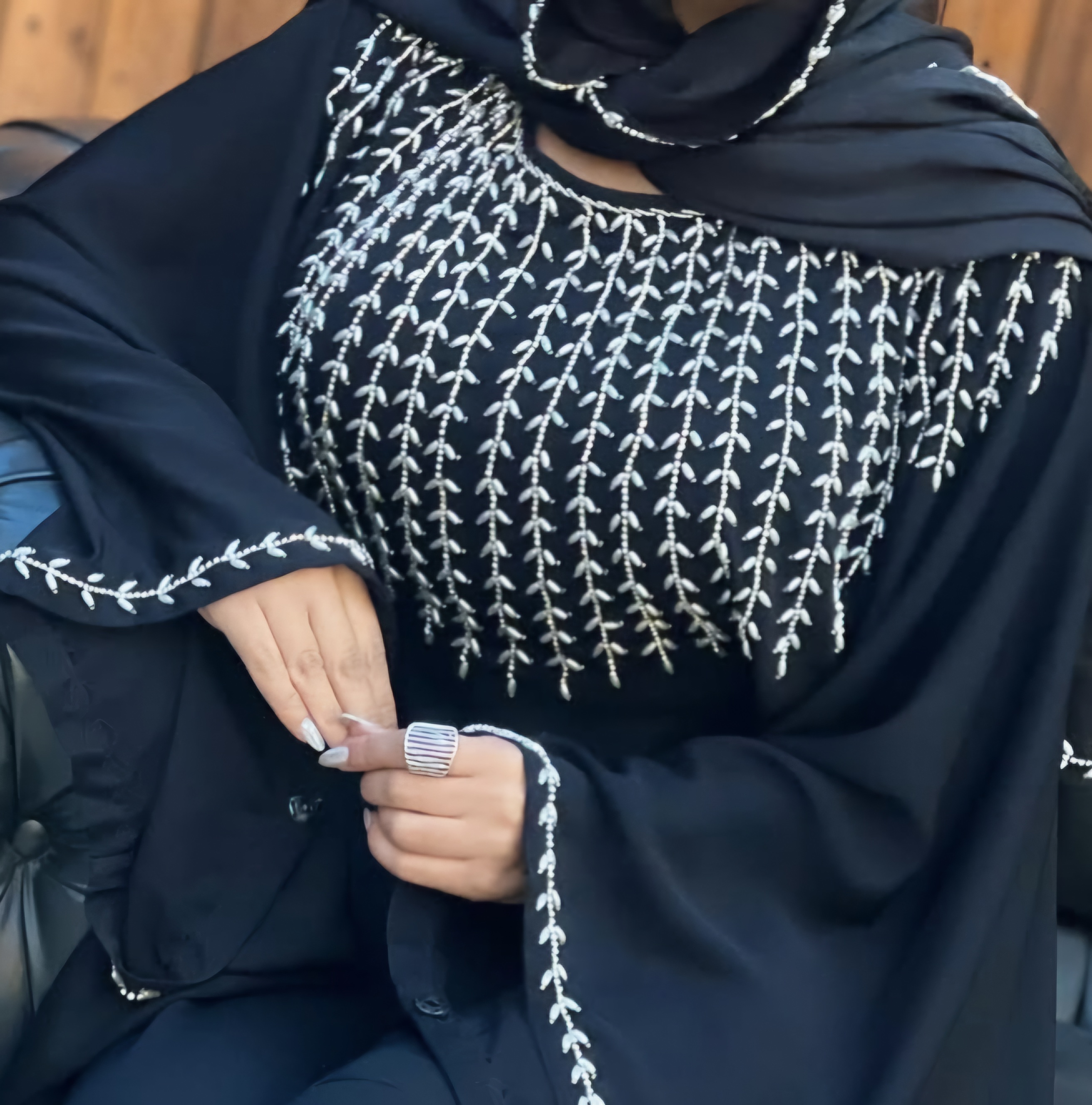مانتو عبایی گل گندم فلورانس تولیدشده با پارچه درجه یک خاکستری، سنگدوزی های دور یقه و سر آستین ها همگی دست دوز هستند. برای آستین ها دکمه تعبیه گردیده که ایستایی بسیار فوقالعاده ای به مانتو عبایی می دهد .